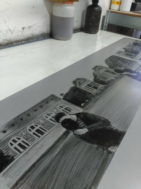 La litografía en plancha de aluminio es la técnica que ha unido a Valle Baranda Ferrero y Carlos Pérez Rodríguez desde los inicios del proyecto. Esta técnica artesanal permite crear imágenes a través de procesos gráficos precisos, combinando creatividad y control técnico.